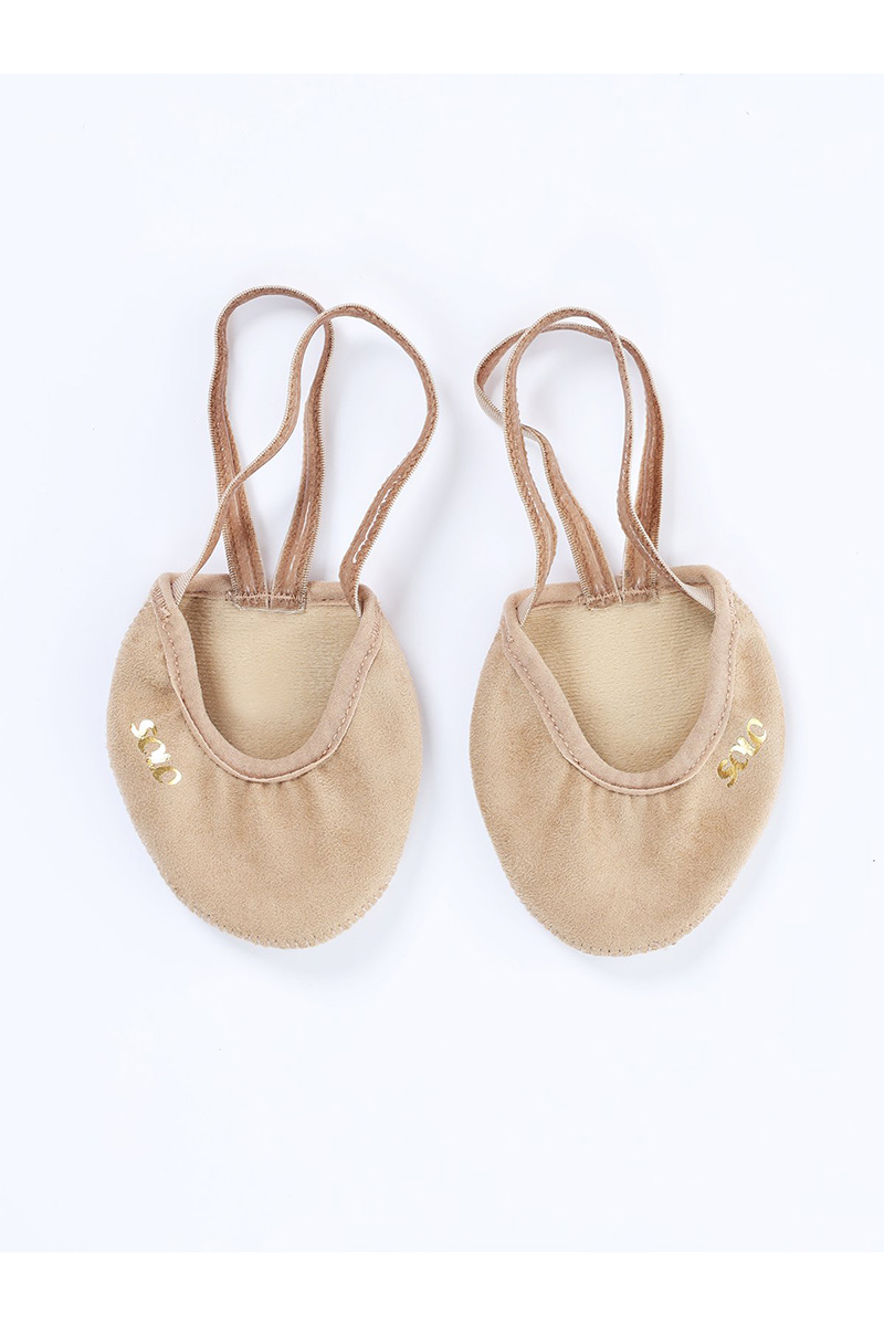 Bottom part is additionally reinforced with porolone to soften jumps and synthetic caprovelour is used as lining. Faux suede upper and bottom with reinforced lining for better shock absorption. Thanks to comfortable flat seams and silicone these toe shoes are firmly fixed to feet. Suitable for both beginner gymnasts and professionals.