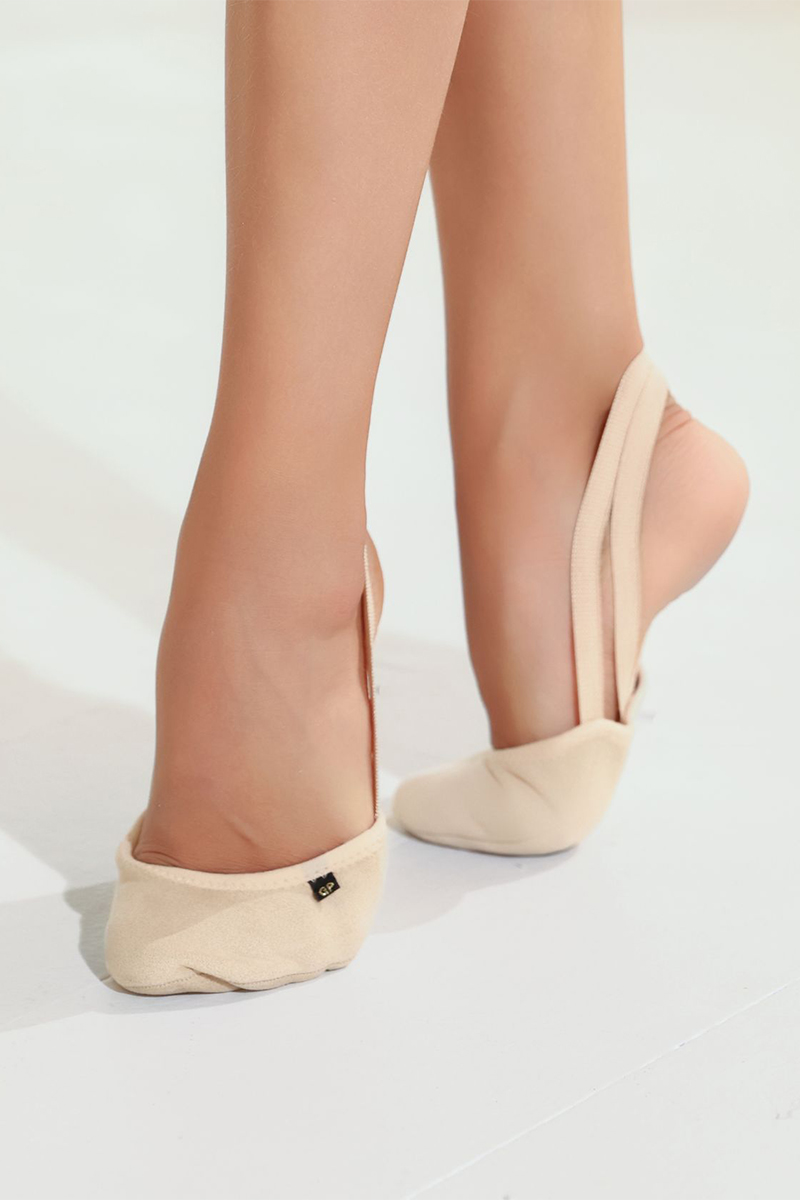 FLEXI half shoes for gymnastics are a professional model created for both daily training and stage performances. Made from high-quality nude microfiber, they gently contour to the foot for a natural, secure fit. Elastic straps keep the shoes firmly in place, allowing full freedom of movement.