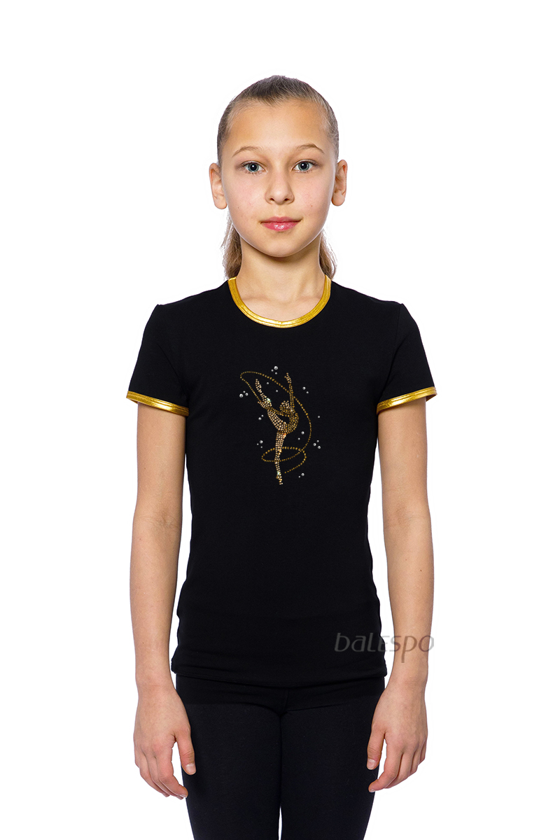 Gymnastics T-shirt BALESPO RGC 210.1-100.3 with gold trim and gold crystals "Gymnast with ribbon"